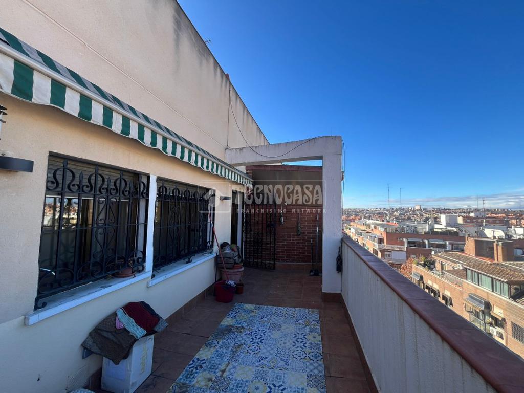 La joya de este ático es su terraza de 25 m², perfecta para disfrutar de vistas espectaculares de la ciudad. El edificio, construido en 1965 y renovado en 2019, cuenta con ascensor y portero físico, brindando seguridad y accesibilidad. Este hogar combina la tranquilidad de un barrio residencial con la cercanía a las comodidades urbanas.